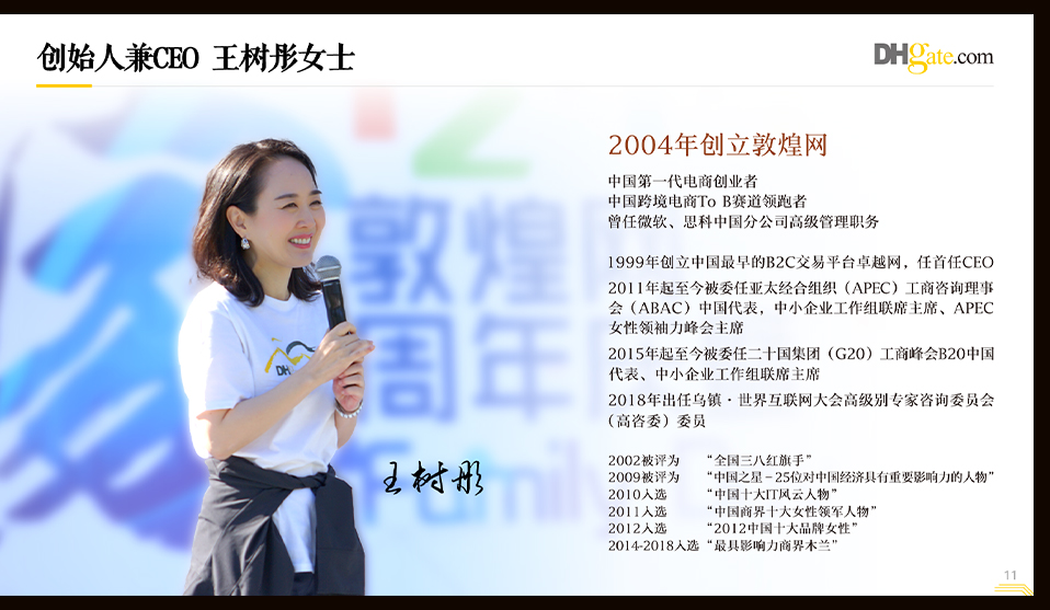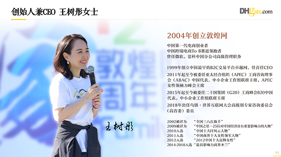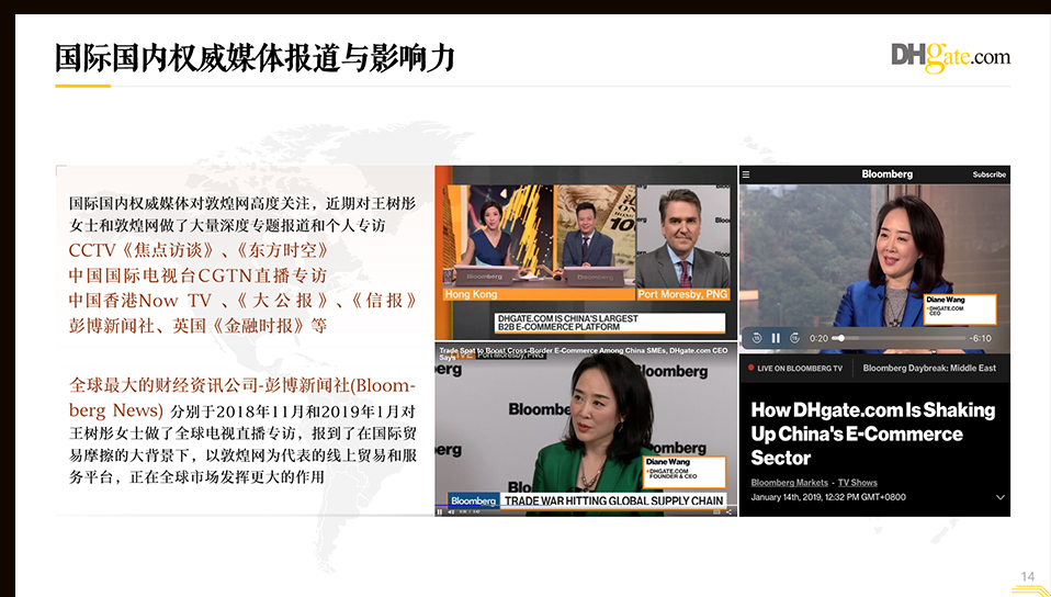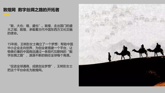 PPT中大量运用媒体关于敦煌网的采访图片真实可信。整个项目从设计方案到内容制作,周期为10个工作日。