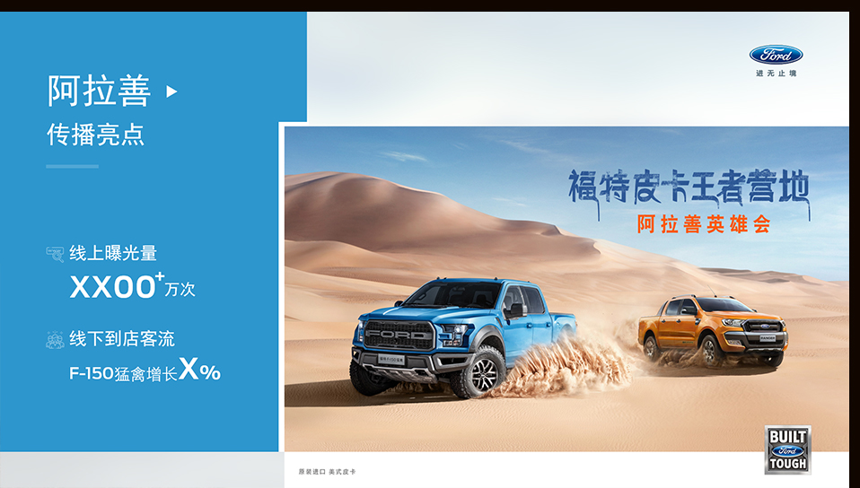 福特汽车(中国)有限公司简称福特中国,成立于1995年10月25日,是美国福特汽车公司在中国设立的全资子公司。在中国,福特汽车有4个汽车制造工厂,并有4个工厂正在建设中。福特员工总数超过20,000名。福特汽车正加快在中国市场的发展。绎奇完成商务年会PPT设计。