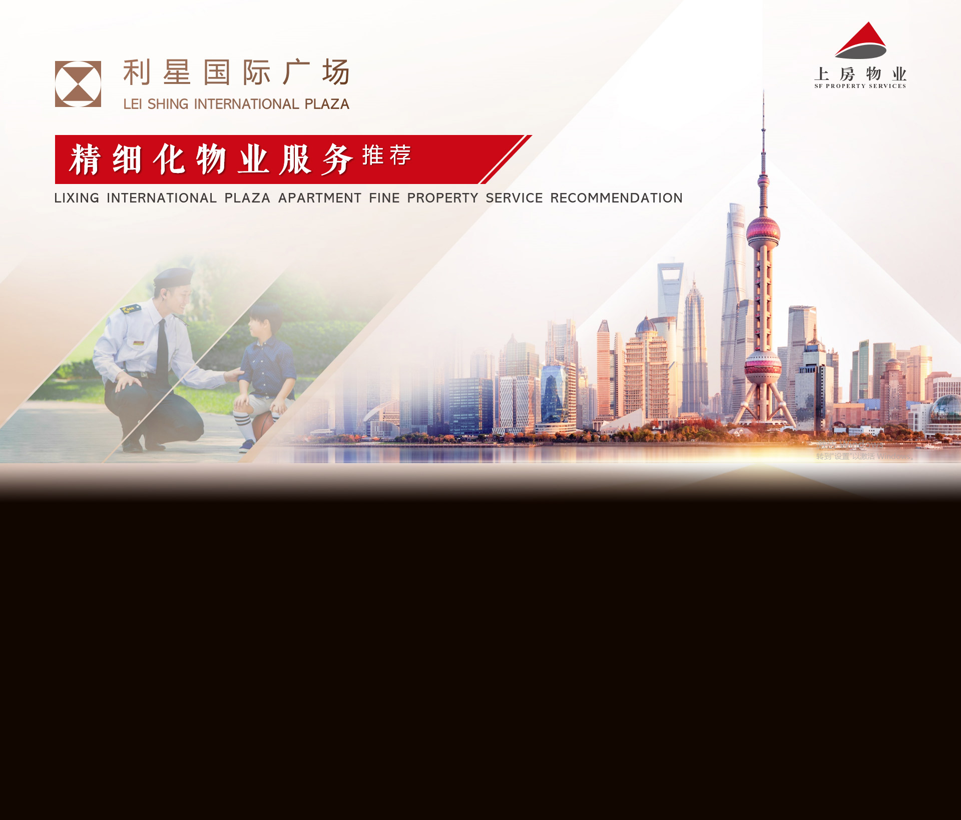 这是上房物业对利星国际广场的精细化物业服务推荐,在接到客户咨询之后,我们通过专业经验引导,从企业概况、服务理念、品质管控、特色服务、方案提升和项目案例六个方面着手。
